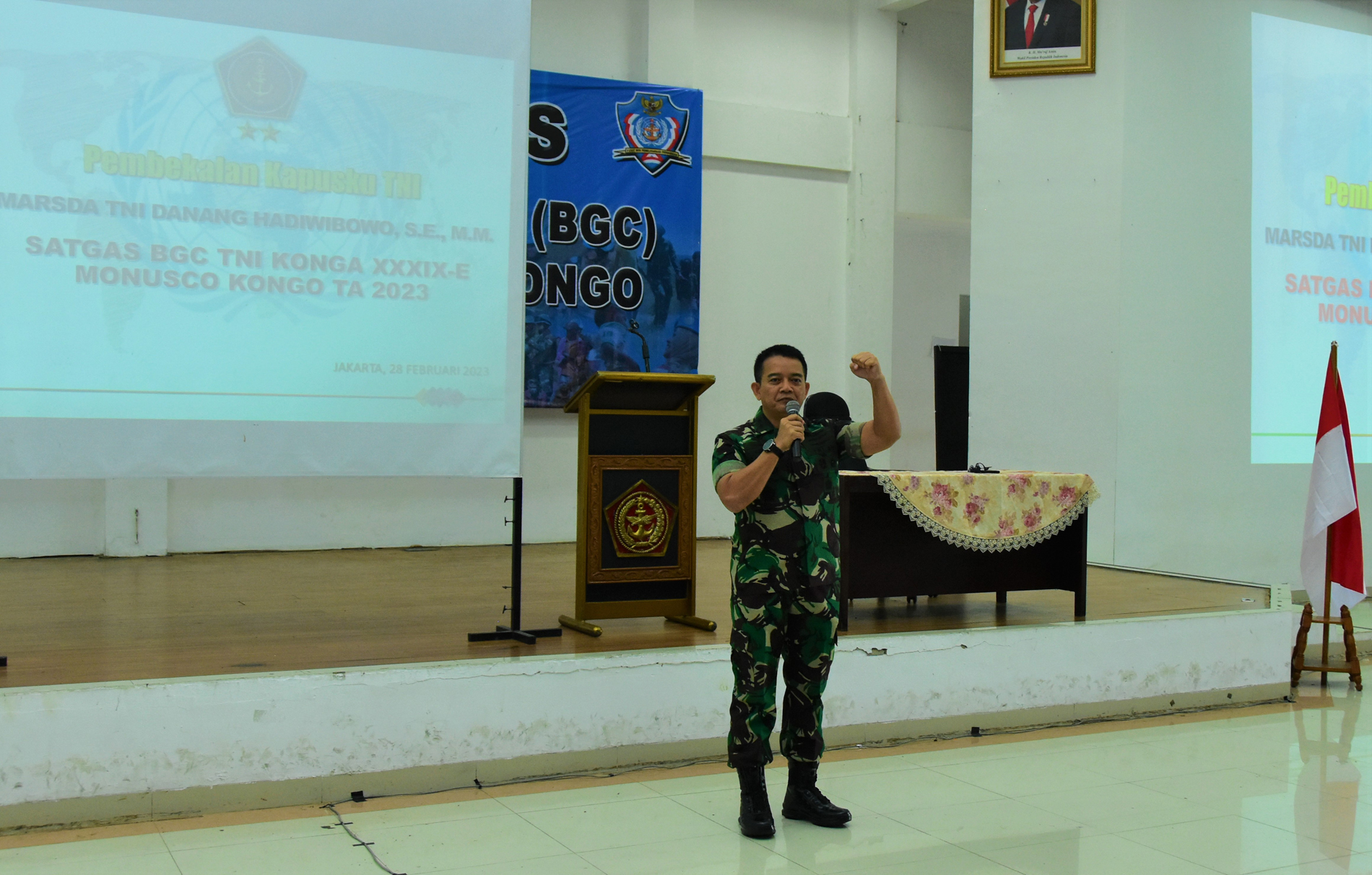 Kepala Pusat Keuangan TNI Marsekal Muda TNI Danang Hadiwibowo, S.E., M.M., memimpin langsung dalam Pembekalan Kapusku TNI kepada Satgas BGC TNI Konga XXXIX-E Monusco Kongo TA 2023. Bertempat di Aula PMPP TNI Sentul Bogor. Selasa (28-02-2023).