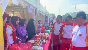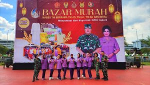Kepala Pusat Keuangan TNI (Kapusku TNI) Marsekal Muda TNI Danang Hadiwibowo, S.E., M.M., didampingi Ketua IKKT PWA Cab. BS XVII Pusku TNI Ny. Nori Danang Hadiwibowo, mengunjungi Stand Bazar Satker Pusku TNI, bertempat di Bazar Murah Mabes TNI Cilangkap Jakarta Timur. Jumat (14/04/2023).