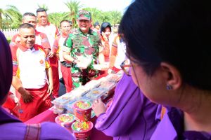 Kapusku TNI ikut berbelanja Bazar di Stand Pusku TNI dan membagikan kepada Anggota Pusku TNI yang menghadiri dalam kegiatan Bazar Murah Mabes TNI.