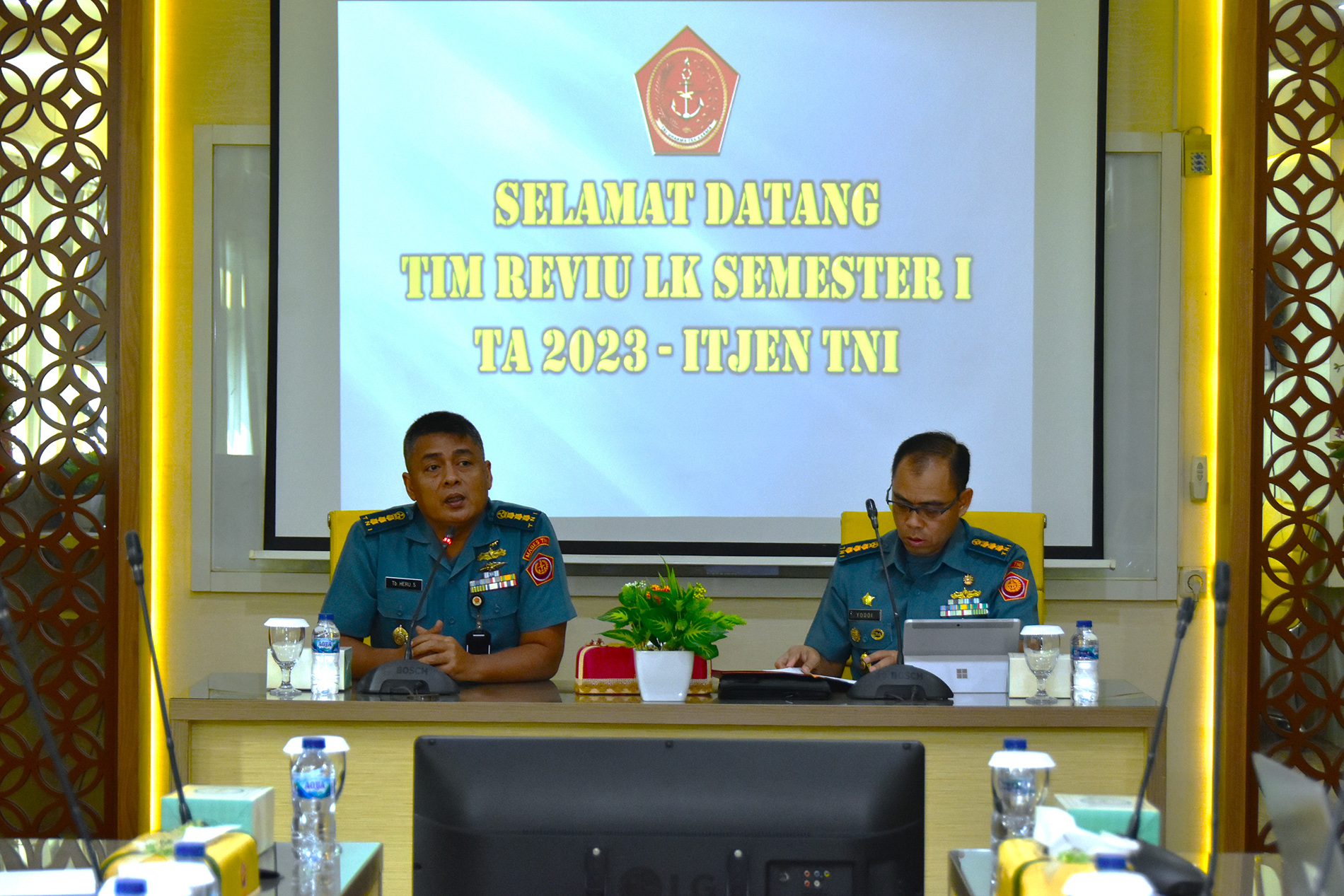 Kabidakun Pusku TNI Kolonel Laut (S) Ujang Heru Syukur, S.E., S.H., mewakili Kapusku TNI Marsekal Muda TNI Danang Hadiwibowo, S.E., M.M., didampingi para kabid Pusku TNI menerima kedatangan Ketua Tim Itjen TNI Kolonel Laut (S) Yoddi Marantika, S.E., beserta anggota tim. Dalam rangka Reviu LK (Laporan Keuangan) Semester I TA 2023 yang bertempat di Ruang Rapat Pusku TNI G.B2 / L.2 Mabes TNI Cilangkap Jakarta Timur. Senin (31/07/2023) @penpuskutni