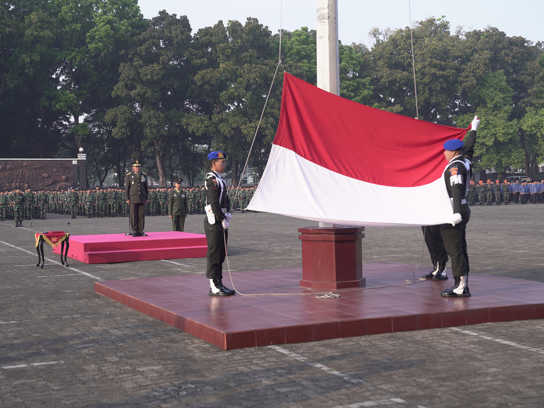 Bertindak selaku Inspektur Upacara (Irup) yaitu Asisten Logistik (Aslog) Panglima TNI Mayjen TNI Yustinus Peristiwanto, S.T., dan sebagai Komandan Upacara (Danup) Letkol Cpl Mampe Koko David.