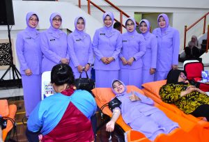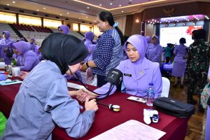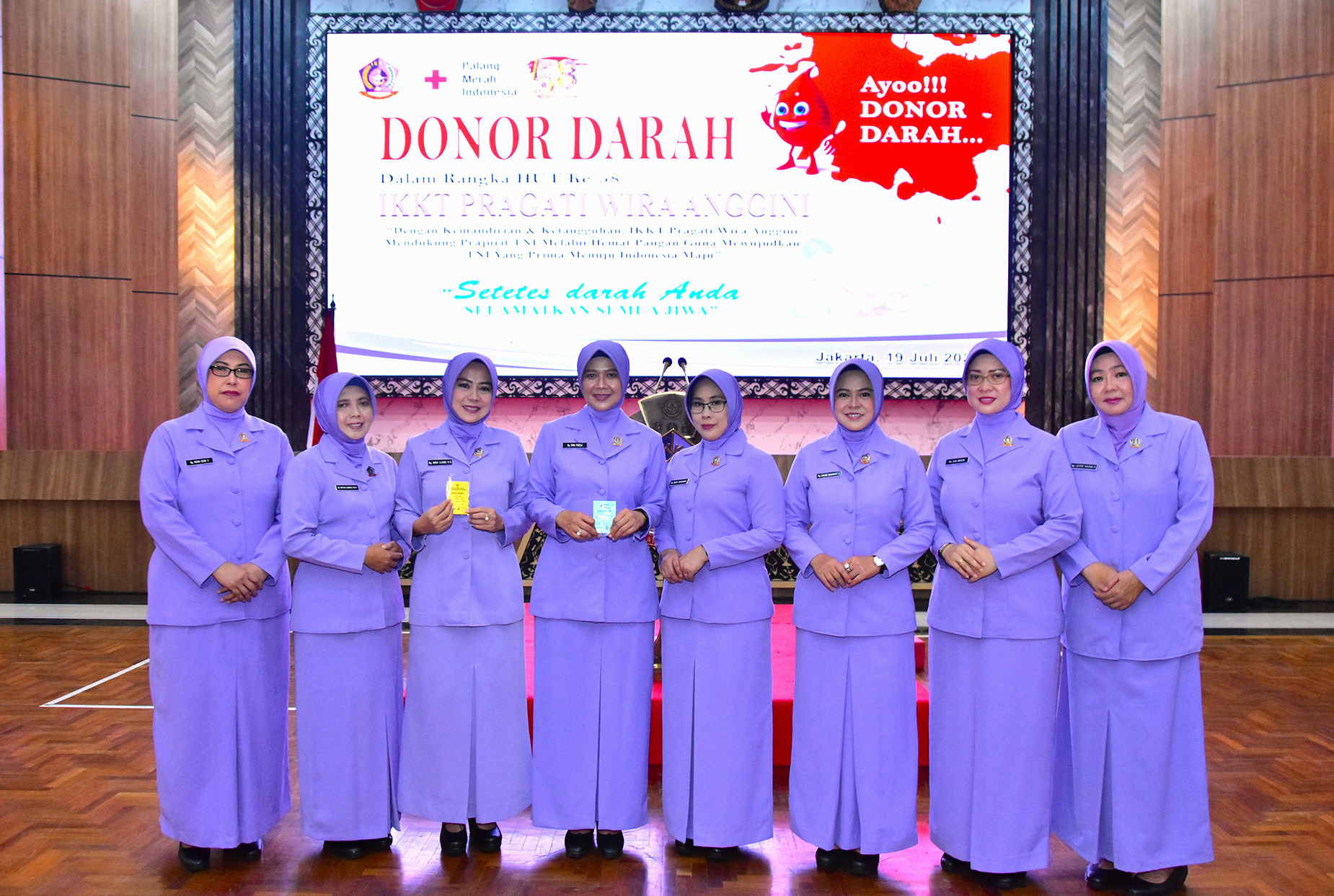 Ketua IKKT PWA CAB BS XVII Pusku TNI Ny. Vina Poedji Santoso didampingi Wakil Ketua IKKT Ny. Anita Hermawan beserta Pengurus IKKT PWA BS XVII Pusku TNI menghadiri pelaksanaan donor darah dalam rangka HUT IKKT ke-58 dengan tema “Setetes Darah Anda Selamatkan Semua Jiwa” bertempat di GOR A. Yani Mabes TNI Cilangkap Jakarta Timur. Jumat (19/07/2024).