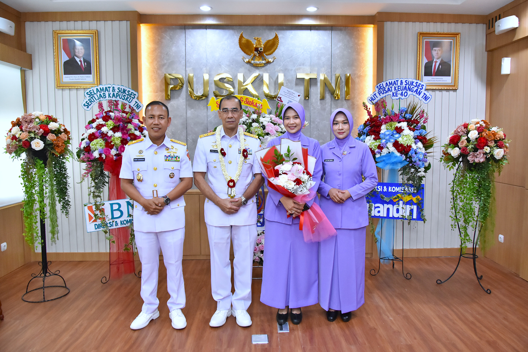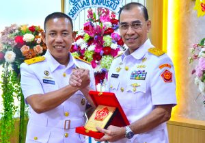 Kepala Pusat Keuangan TNI (Kapusku TNI) Laksamana Pertama TNI Imam Subarkah, S.E., M.M., M.Tr.Opsla., CFrA., CRMP., melaksanakan lepas sambut dengan Mantan Kapusku TNI Laksamana Muda TNI Poedji Santoso, CHRMP., M.Tr.Opsla., bertempat diruang rapat Pusku TNI Gd. B2/Lt.2 Mabes TNI Cilangkap Jakarta Timur. Kamis (20/03/2025).
