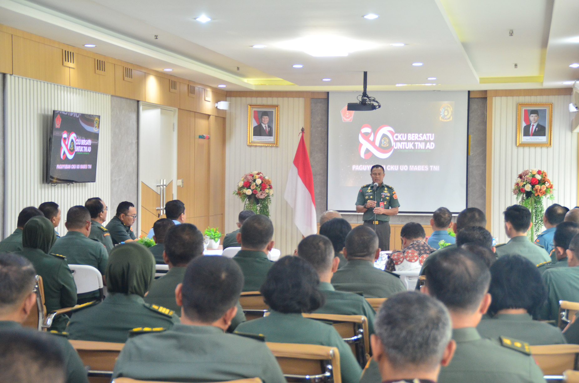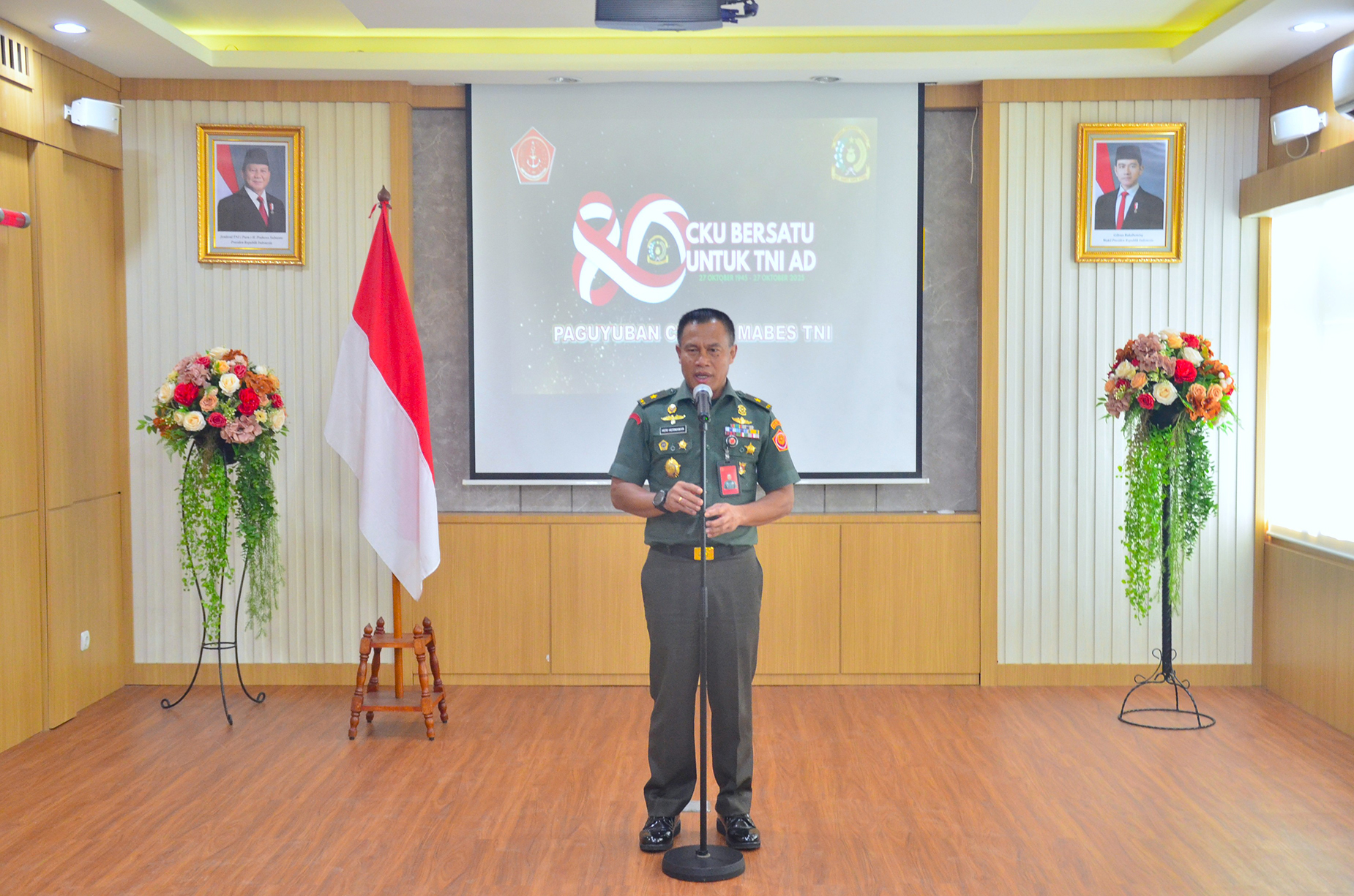 Kepala Pusat Keuangan TNI (Kapusku TNI) Laksda TNI Imam Subarkah, S.E., M.M., M.Tr.Opsla., CFrA., CRMP., memberikan sambutan dalam rangka Syukuran HUT Keuangan TNI AD ke – 80 di lingkungan UO Mabes TNI. Bertempat di Ruang Rapat Pusku TNI Gd. B2 / Lt. 2 Mabes TNI Cilangkap Jakarta Timur. Senin (27/10/2025)