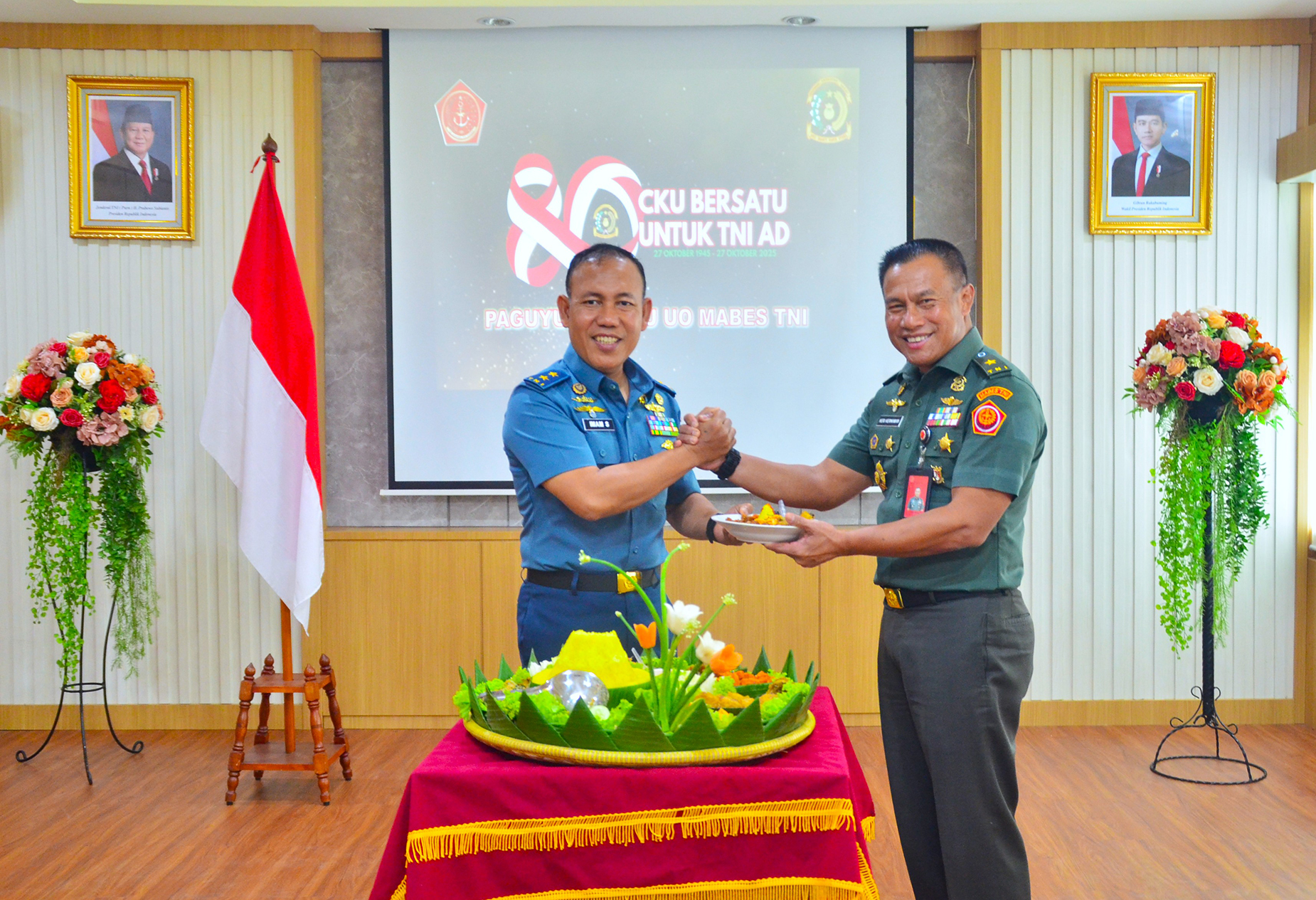 Dilanjutkan dengan Pemotongan Tumpeng oleh Kapusku TNI kepada Ketua Paguyuban CKU dan diakhiri ramah tamah.