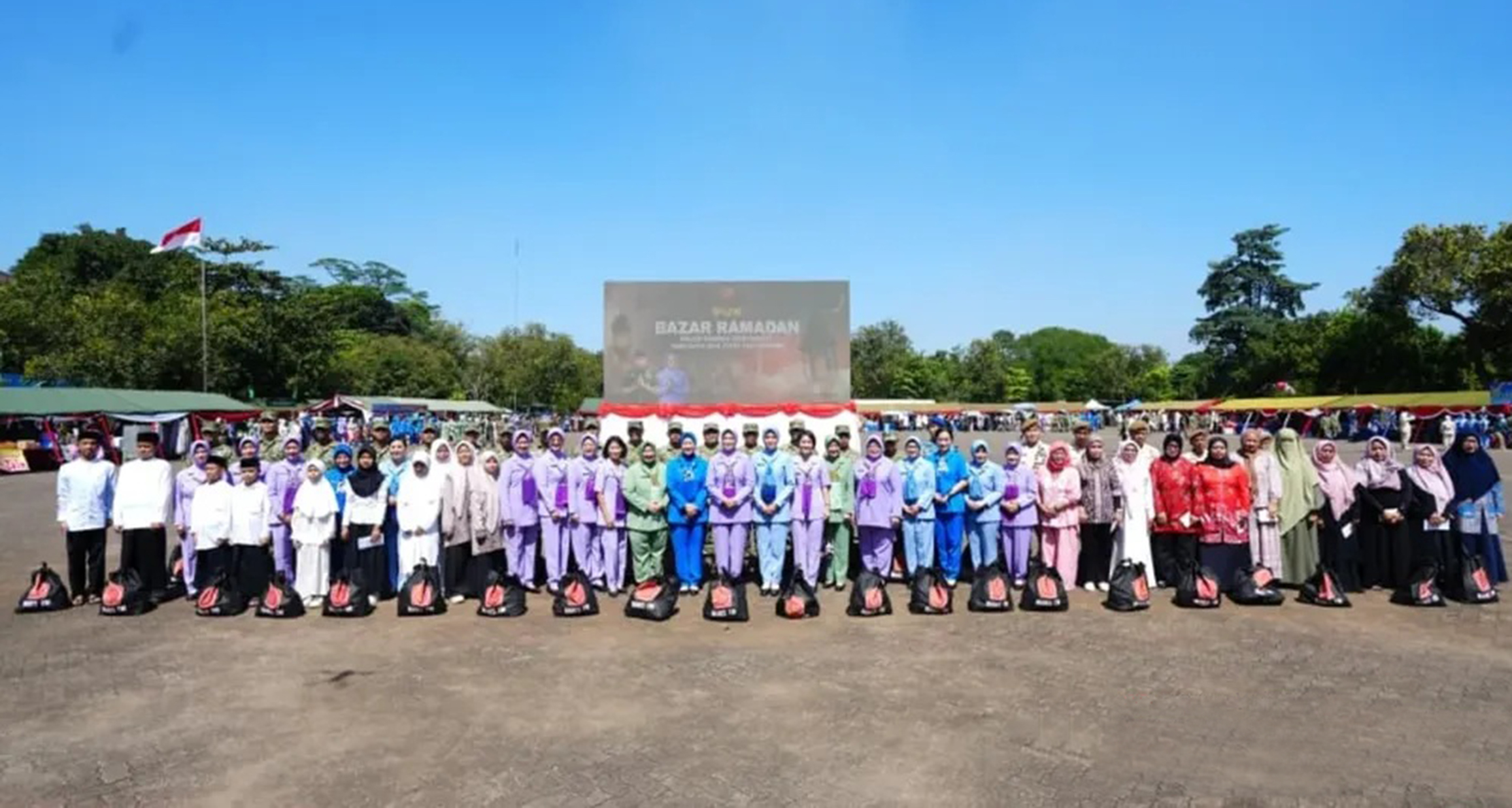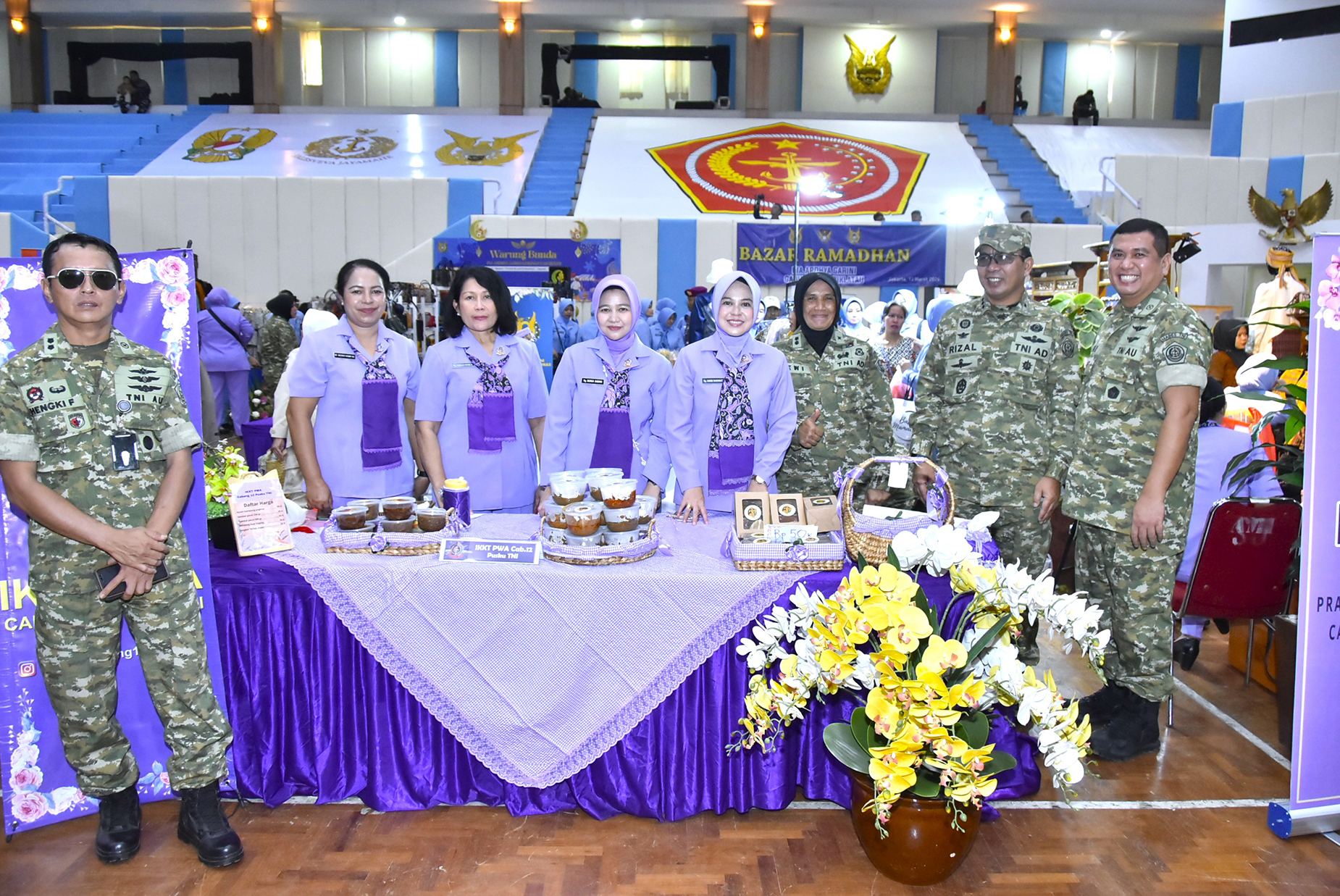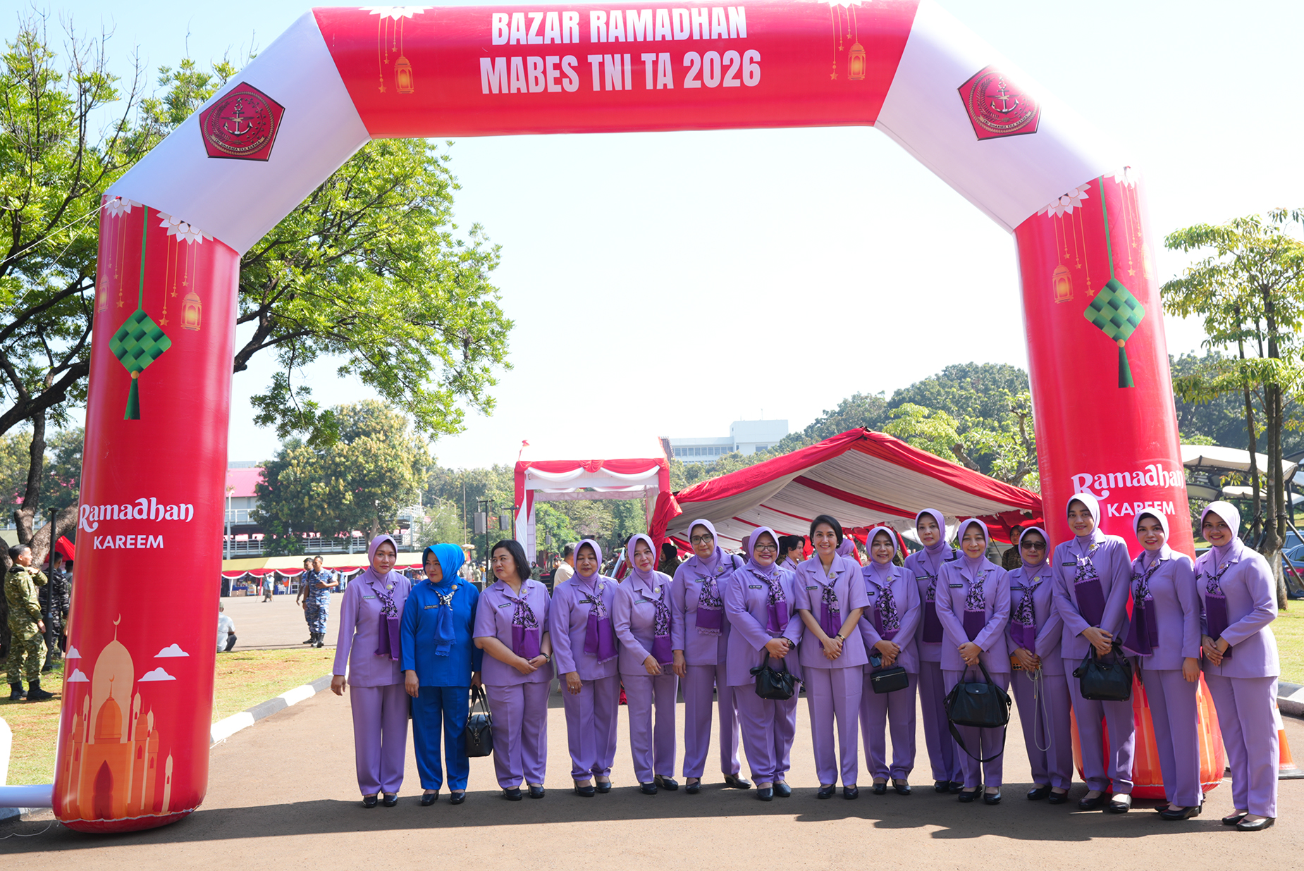 Ketua IKKT PWA Cab 12 Pusku TNI Ny. Rini Imam Subarkah beserta pengurus. Turut serta memeriahkan Bazar Ramadhan dalam rangka menyambut Hari Raya Idul Fitri 1447 Hijriah/2026 Masehi. Bertempat di Lapangan Gor A. Yani Mabes TNI Cilangkap Jakarta Timur. Jumat (13/03/2026).