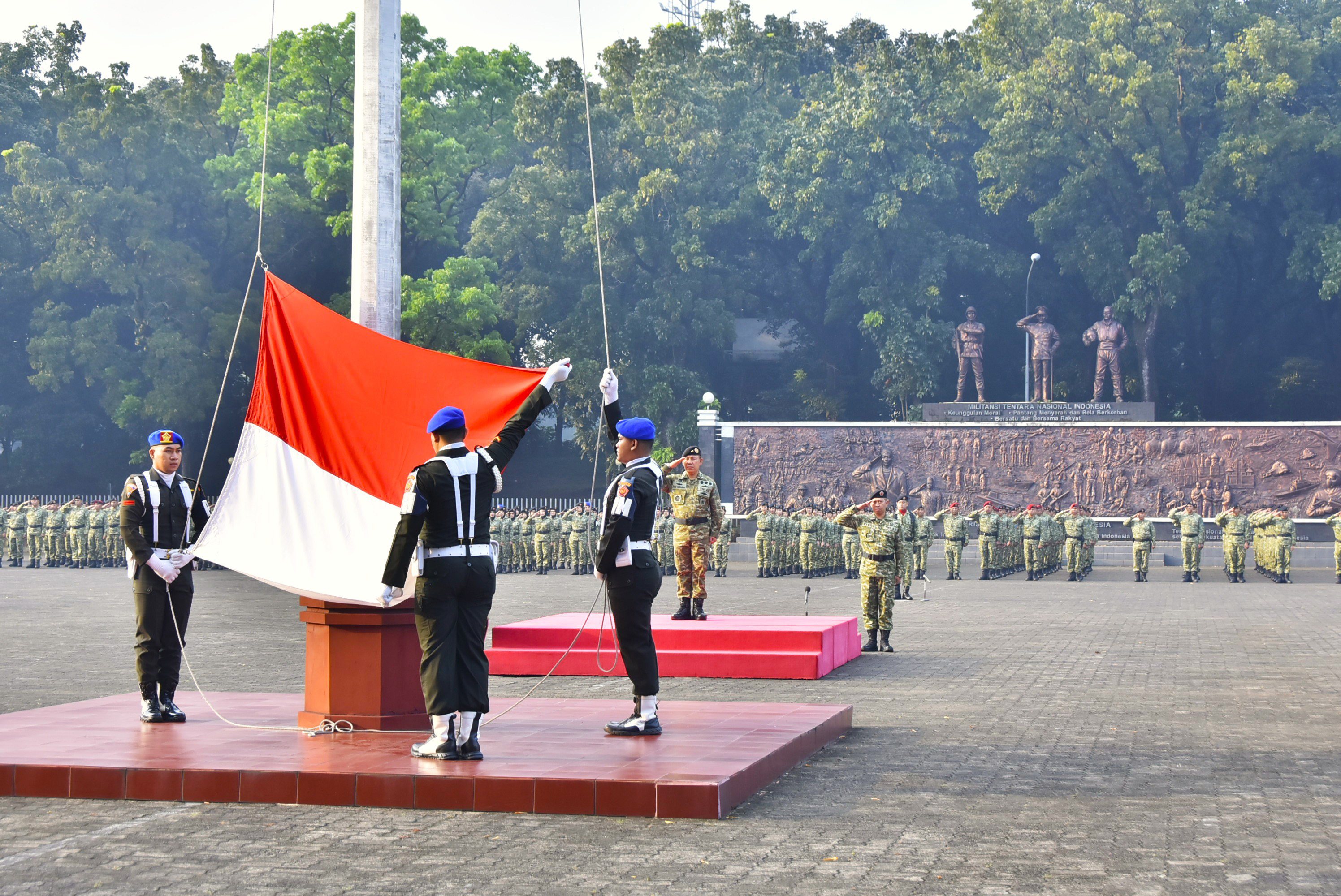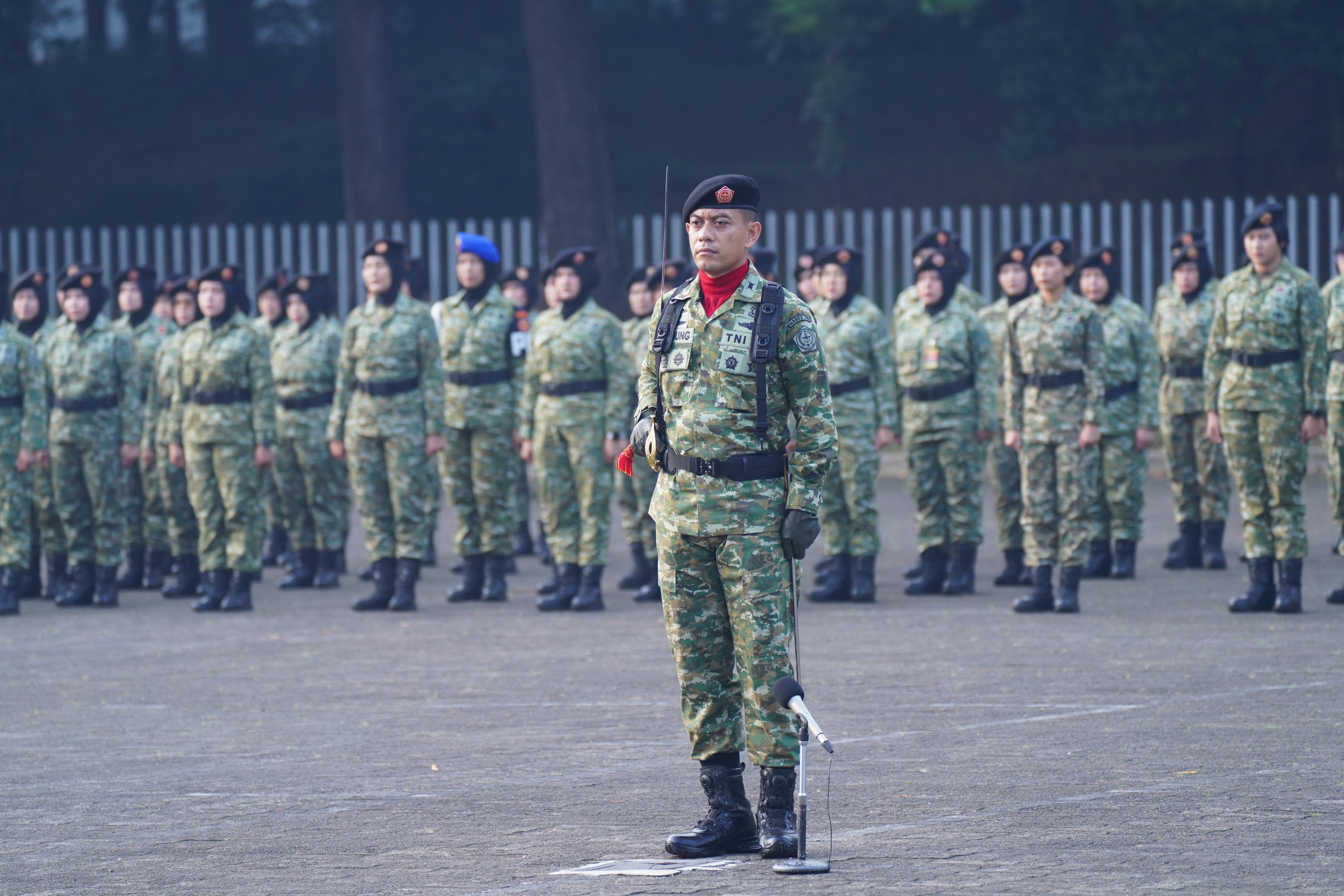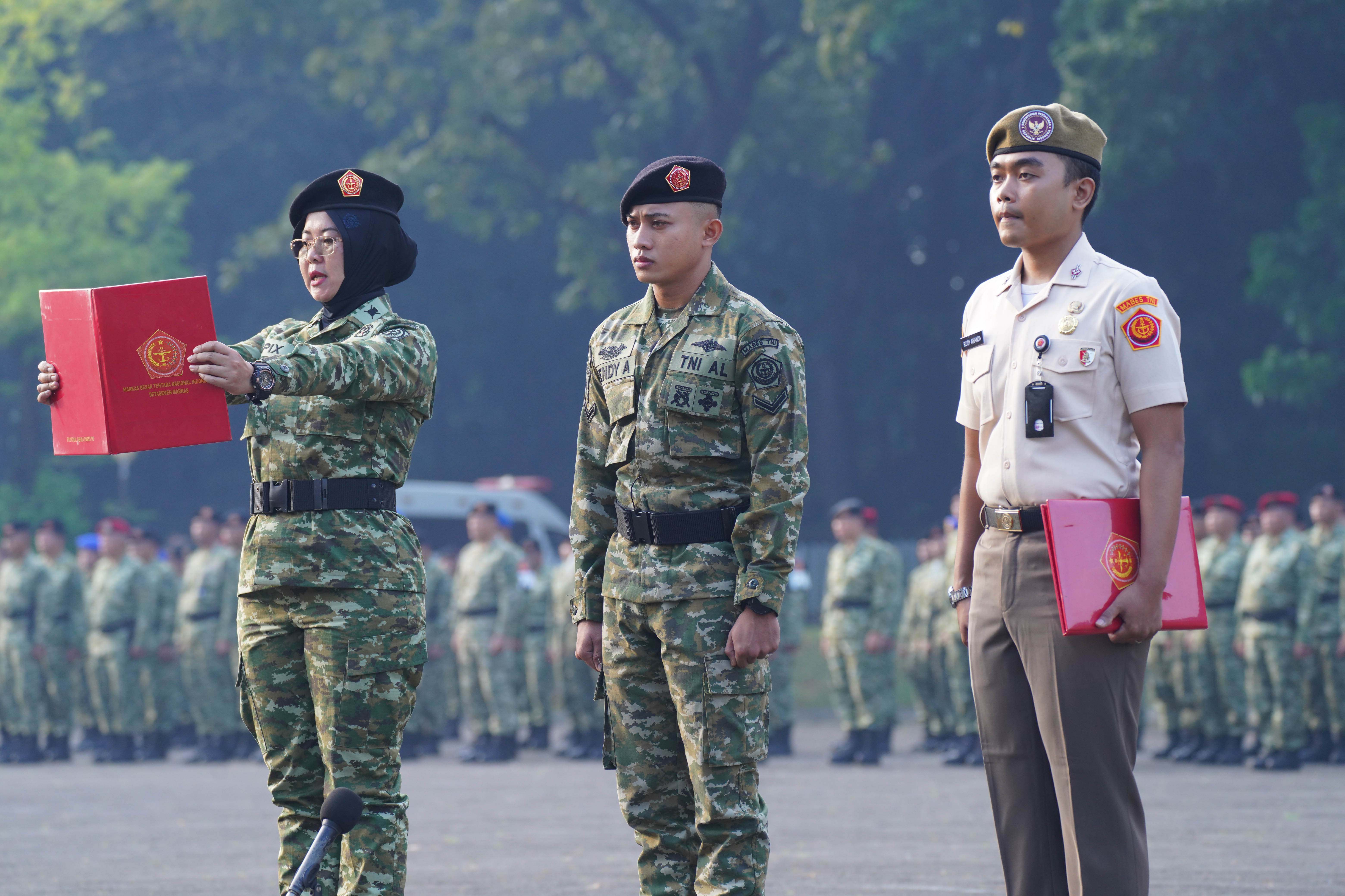 Kapusku TNI Selaku Inspektur Upacara membacakan amanat Panglima TNI Jenderal TNI Agus Subiyanto, S.E., M.Si., “Ikuti perkembangan lingkungan strategis global, regional dan nasional, untuk membangun kewaspadaan satuan terhadap ancaman di wilayah masing-masing”